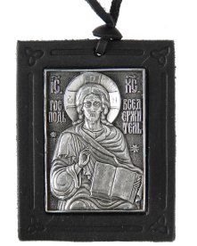 Икона подвесная ручной работы, имеет полимерную основу с нанесением серебра слоем 0,24 мкм, чернение, декоративно-художественная обработка.