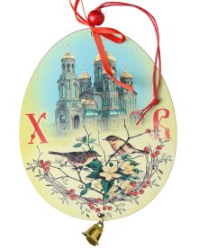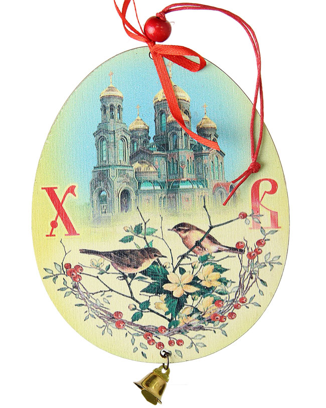 Подвеска пасхальное яйцо с колокольчиком «Птицы у храма»