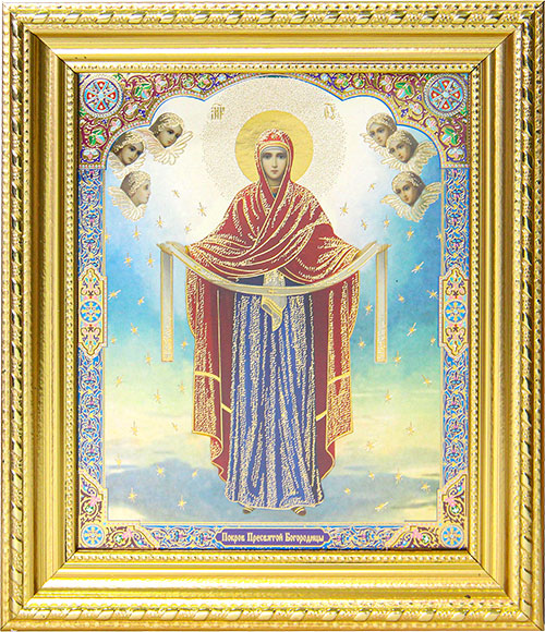 Покров Пресвятой Богородицы, икона в багетной рамке (19 х 22 см)