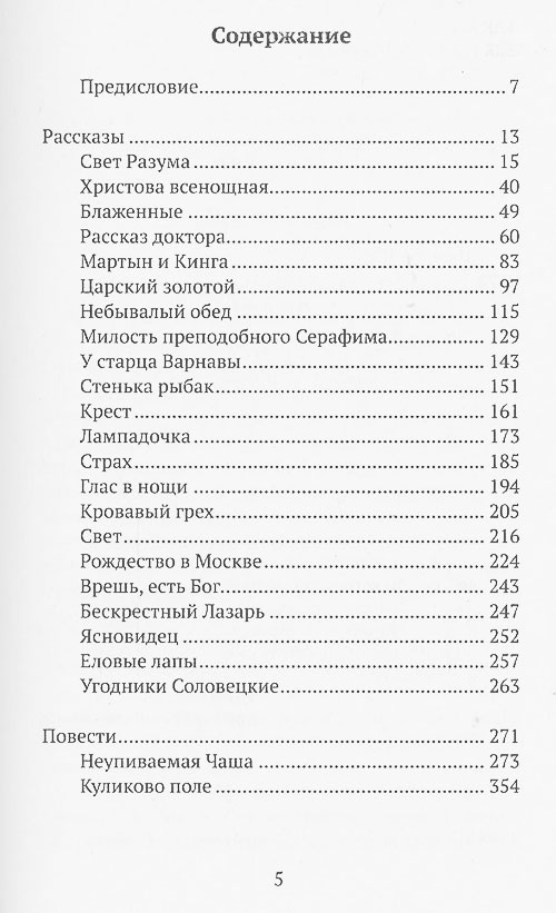 На скалах Валаама [Na skalach Valaama] 1897 По спешному делу [Po speshnomu delu], 1906 Вахмистр [Vahmistr], 1906 Распад [Raspad], 1906 Иван Кузьмич [Ivan Kuzmich], 1907 Лето господне [Leto Gospodne], 1933–1948 Богомолье(Bogomol’e), 1931
