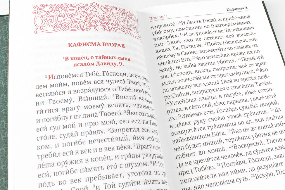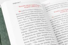 Псалтирь на русском языке, крупный шрифт, два цвета, закладка, обложка бумвинил, тиснение.