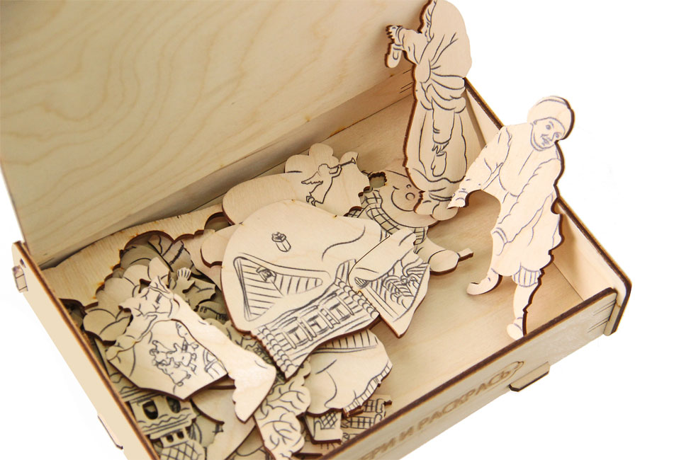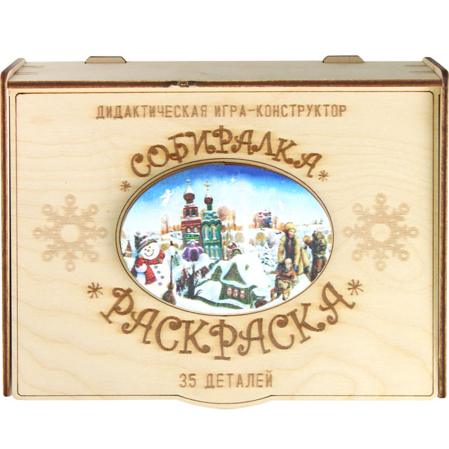 Деревянная подарочная коробка с деревянным пазлом из 35 деталей. Собери и раскрась. Подарок к Рождеству.