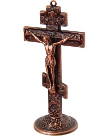 Распятие на подставке из металла. Распятие помещено в специальную коробочку, предохраняющую от внешних воздействий.