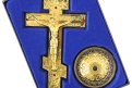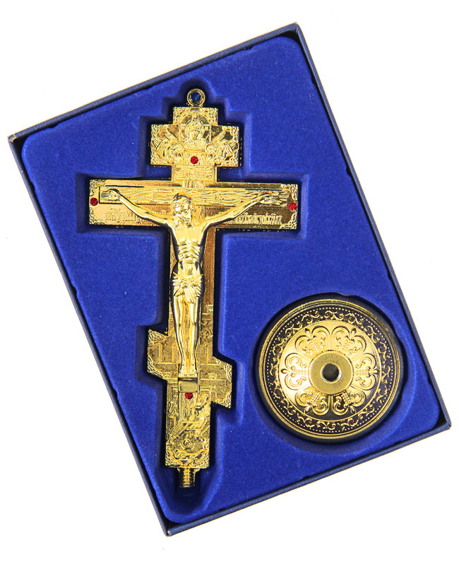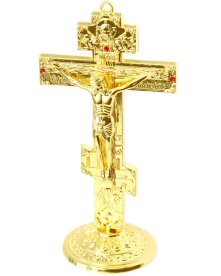 Распятие на подставке из металла. Распятие помещено в специальную коробочку, предохраняющую от внешних воздействий.