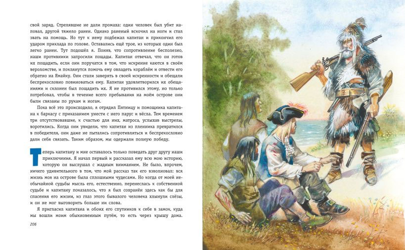 Роскошные виды тропического острова, старинные парусники, идиллические картины мирного бытия и жестокие схватки с каннибалами и пиратами встают перед нашими глазами благодаря ярким и детальным иллюстрациям известного петербургского художника Владимира Канивца.