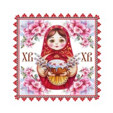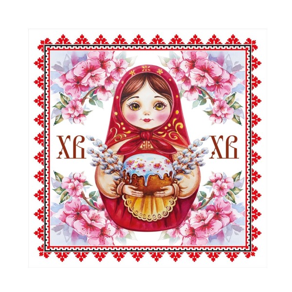 Салфетка пасхальная имеет надпись «ХВ» в обрамлении художественного узора. Она прекрасно украсит стол в день светлого праздника Пасхи или сможет стать прекрасным дополнением к пасхальному подарку.