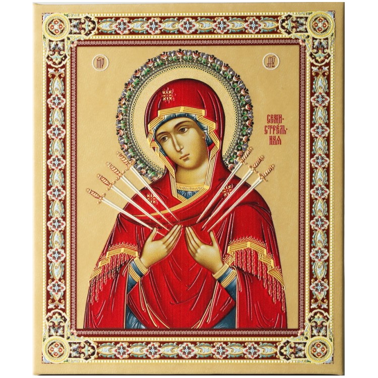 Семистрельная икона Божией Матери, настольная на подставке (13 х 15,5 см)