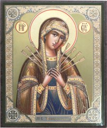 Икона на МДФ, выполненная в технике цветная полиграфия с золотым тиснением.