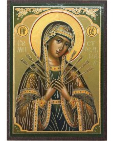 Семистрельная икона Божией Матери на МДФ (6,3 х 9 см)
