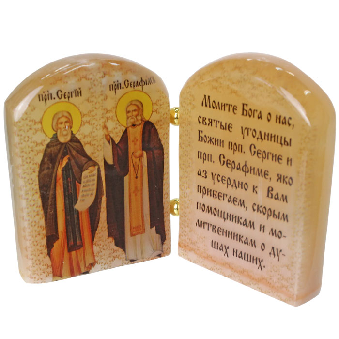 Серафим Саровский, икона двойная из селенита (6,5 х 9 см)
