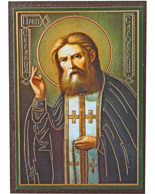 Серафим Саровский икона на МДФ (6,3 х 9 см)