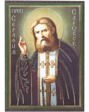 Серафим Саровский с житием икона (9 х 12,5 см)