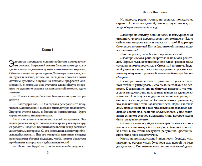 Для того, чтобы обрести счастливую семью, недостаточно быть княжной — в этом Элеонора Львова успела убедиться в стенах Смольного института. Еще нужно быть красивой и богатой, чем эта серьезная и умная девушка похвастаться не может. А потому, не дожидаясь выпускного бала, она бросает Смольный и становится медицинской сестрой. На ее счету тысячи спасенных жизней. Но вот устроить свою жизнь у Элеоноры возможности нет — потому что она безответно влюблена в доктора Воинова, который идет служить в Красную Армию. А что может быть преступнее в глазах девушки «из благородных»?..