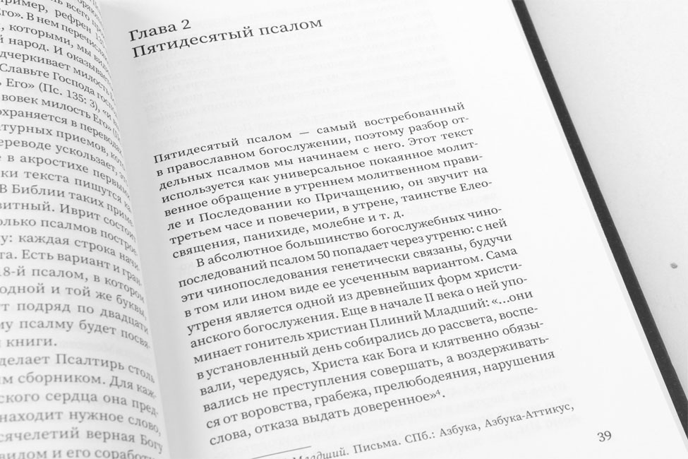 Псалтирь — одна из книг, что более всего «на слуху» у православного христианина. Псалмами заполнено православное богослужение, они звучат на всех без исключения храмовых службах, включая самую главную — Божественную литургию. Псалмы, написанные более двух тысяч лет назад, до сих пор составляют основу нашего молитвенного правила. Настоящая книга поможет понять исторический, культурный и духовный смысл псалмов, использующихся в богослужениях Православной Церкви, и увидеть, почему псалмы были и остаются в центре молитвенной практики каждого христианина.