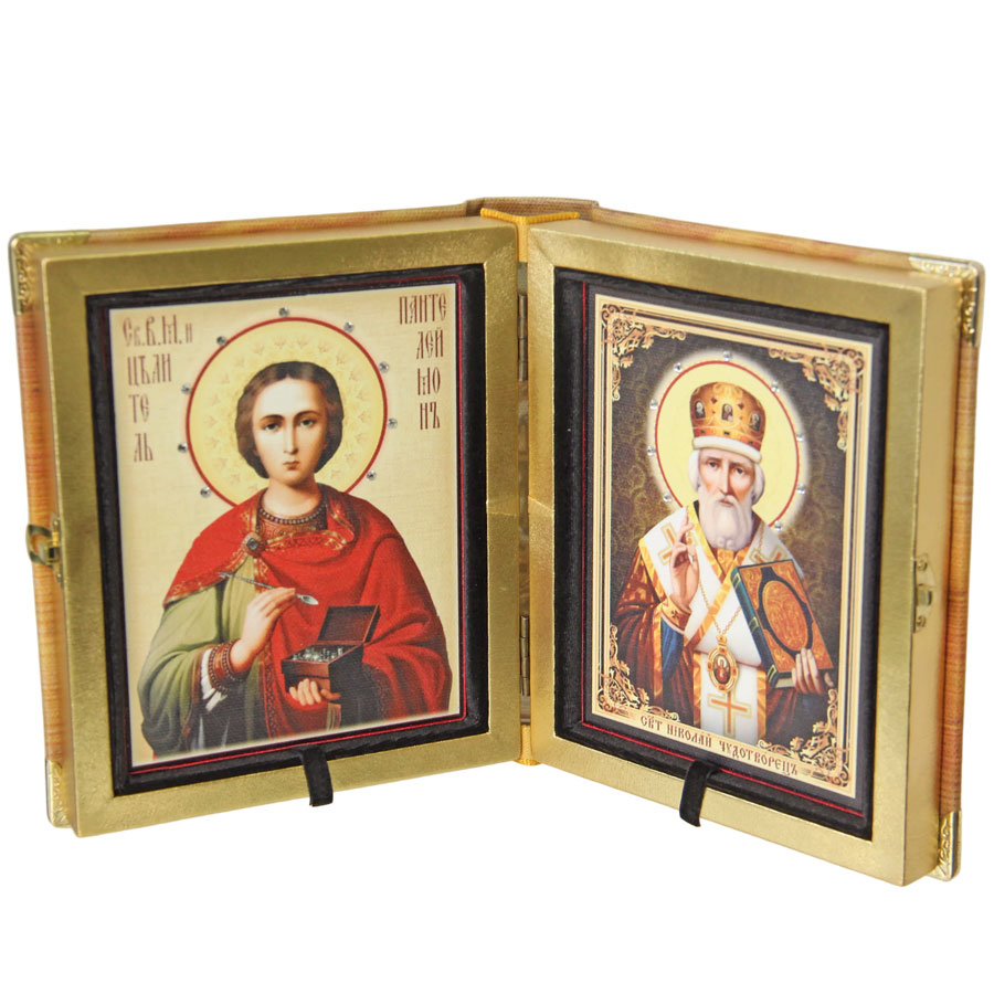 Складень двойной 13 х 17 см (Николай Чудотворец, Пантелеимон Целитель)