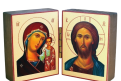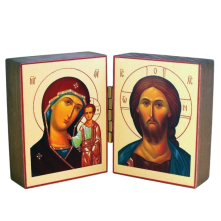 Складень двойной дорожный с иконами Спасителя и Казанской Божией Матери (4 х 5,2 см, дерево)