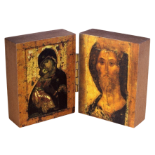 Складень двойной дорожный с иконами Спасителя и Владимирской Божией Матери (4 х 5,2 см, дерево)