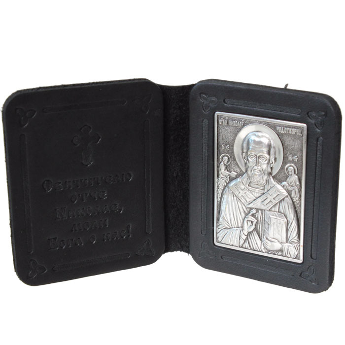 Складень двойной кожаный Николай Чудотворец