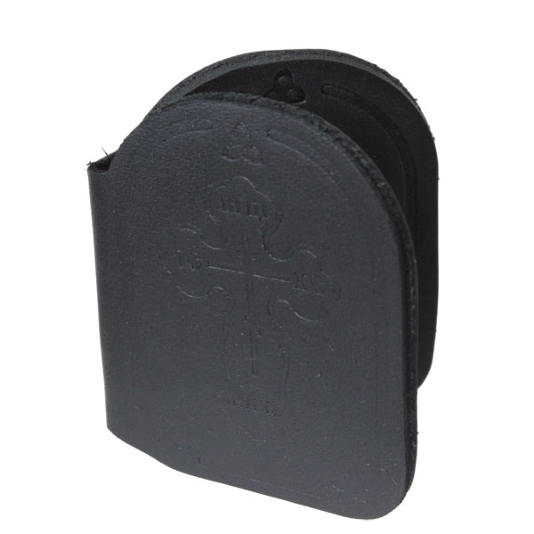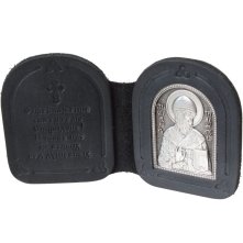 Складень из искусственной кожи с тиснением. Икона изготовлена из меди с гальваническим посеребрением.