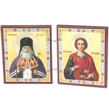 Складень двойной Лука Крымский, Пантелеимон (размер иконы 6 х 7,5 см)
