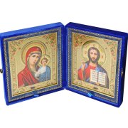 Складень Казанская Божия Матерь, Спаситель (парча, размер иконы 17,5 х 20,5 см)