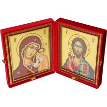 Складень ручной работы «Венчальная пара» с иконами Божия Матерь «Казанская» и «Господь Вседержитель». Венчальной парой благословляют жениха и невесту, вступающих в брак.