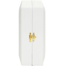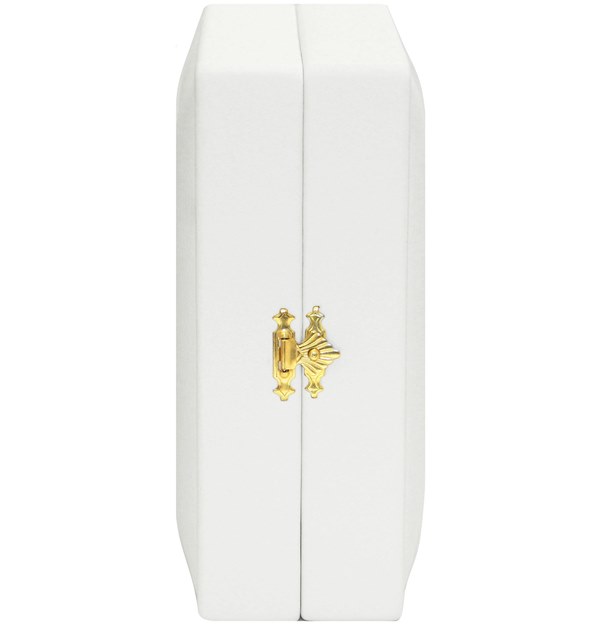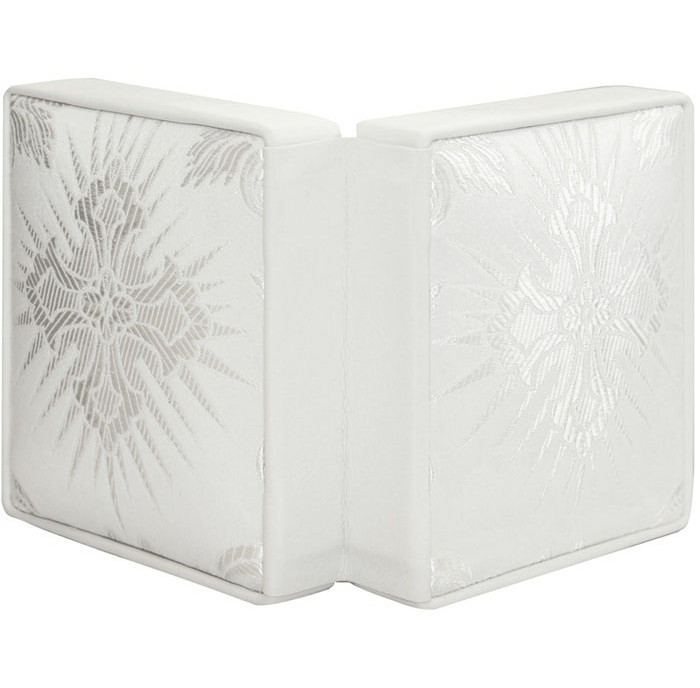 Двойной футляр покрыт жаккардовой тканью. Створки подвижные, футляр закрывается с помощью металлической застежки.