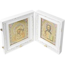 Складень Казанская Божия Матерь, Спаситель, ручная работа (жаккард, размер иконы 22 х 25 см)