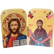 Складень деревянный резной, покрыт лаком, лики Спасителя и Божией Матери «Семистрельная». Иконы на мелованном картоне, вклеены. Ручная работа.