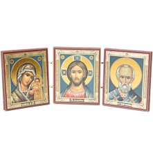 Складень Спаситель, Казанская, Николай Чудотворец (20 х 7,5 см)