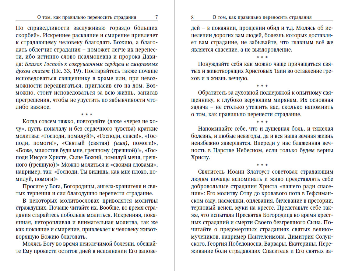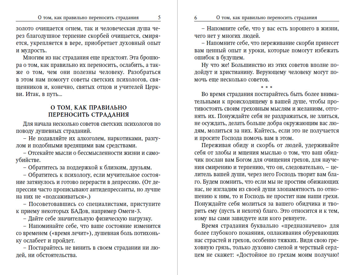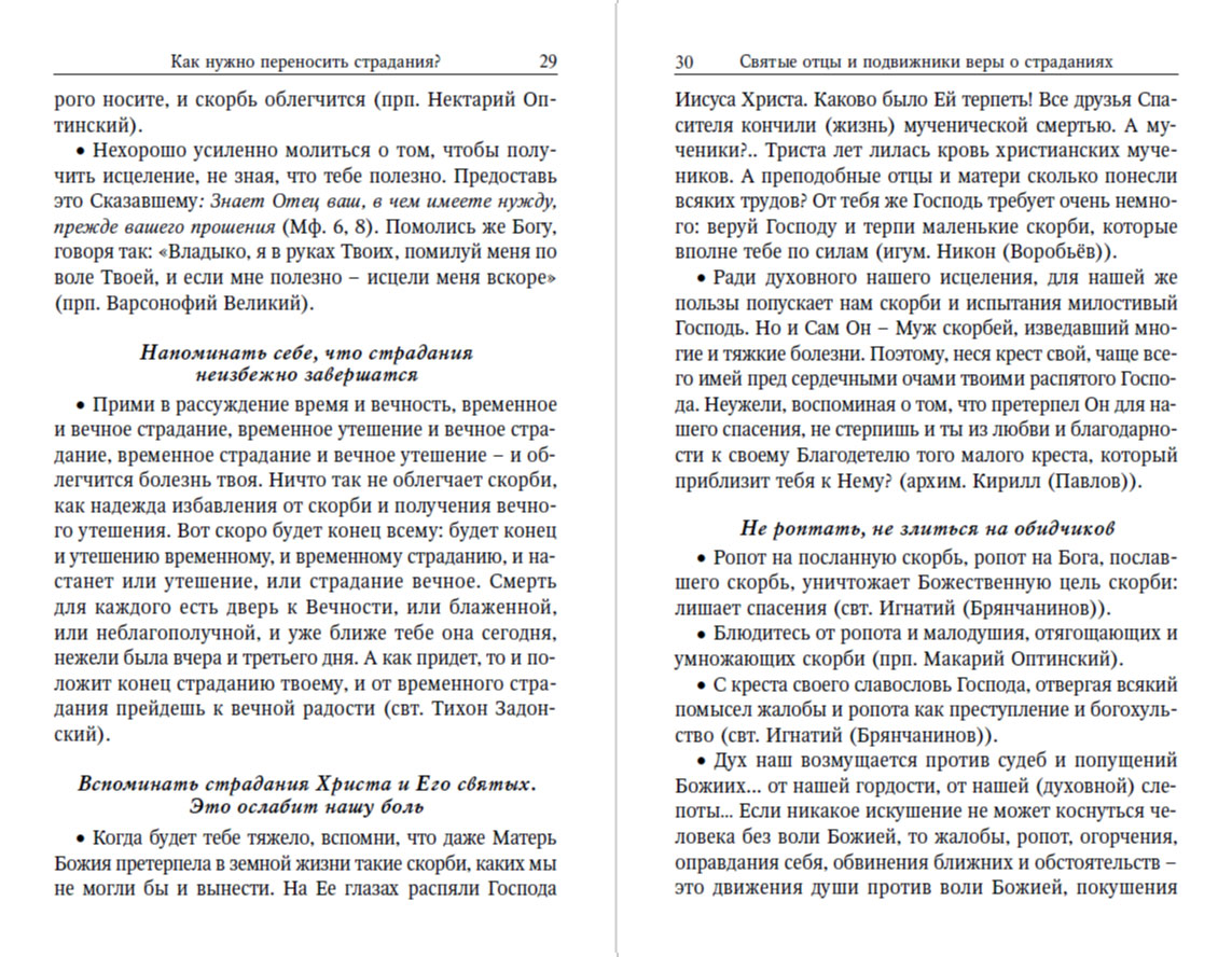 В этой небольшой брошюре, предназначенной для широкого круга читателей, рассказывается о том, как правильно перенести (ослабить) страдания, для чего они попускаются или посылаются Богом. Многим из нас страдания еще предстоят. Поэтому советы, содержащиеся в книге, будут полезны и нам самим, и нашим страдающим ближним, с которыми можно поделиться прочитанным.