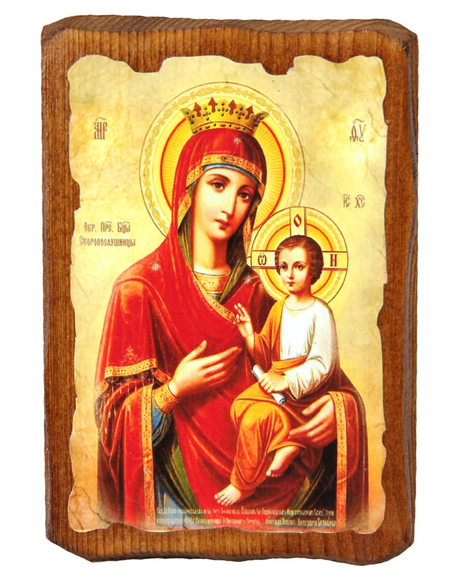 Скоропослушница икона Божией Матери на дереве (освящена на мощах преподобного Гавриила, 7 х 10 см)