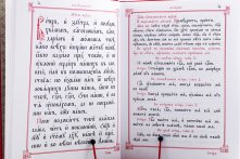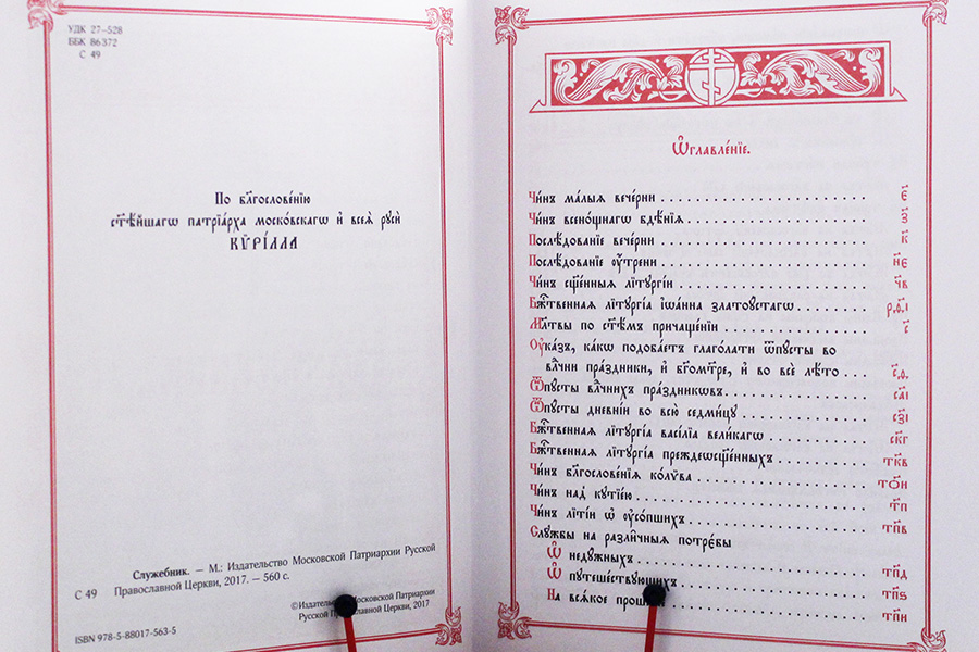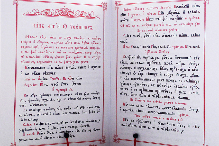 Служебник аналойного формата отличается удобным шрифтовым решением для реплик и молитв священника: они набраны крупным шрифтом, которым традиционно оформлен архиерейский Чиновник, со значительной разницей в размере шрифта по сравнению с текстом ектений и уставными указаниями. Это позволяет священнику сразу находить нужный текст и читать молитвы на расстоянии от аналоя.