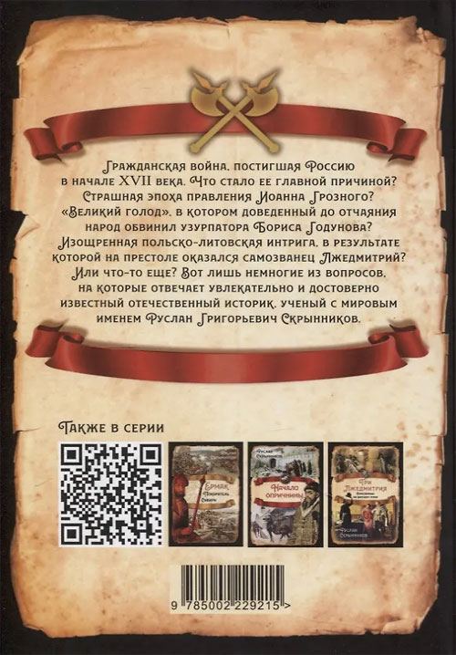 Гражданская война, постигшая Россию в начале XVII века. Что стало ее главной причиной? Страшная эпоха правления Иоанна Грозного? «Великий голод», в котором доведенный до отчаяния народ обвинил узурпатора Бориса Годунова? Изощренная польско-литовская интрига ,в результате которой на престоле оказался самозванец Лжедмитрий? Или что-то еще? Вот лишь немногие из вопросов, на которые отвечает увлекательно и достоверно известный отечественный историк, ученый с мировым именем Руслан Григорьевич Скрынников.
