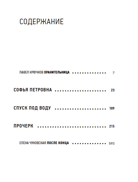 В книгу вошли три повести, две художественные — «Софья Петровна» и "Спуск под воду«— и документальная — «Прочерк», посвященные страшной эпохе — концу тридцатых годов.