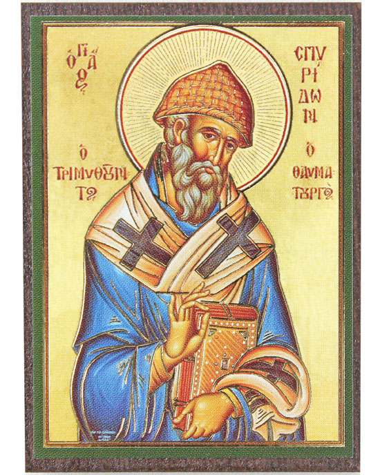 Спиридон Тримифунтский икона на МДФ (4 х 6 см)