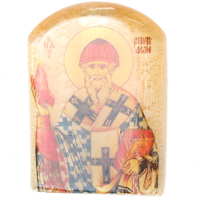 Спиридон Тримифунтский, икона настольная из селенита (45 х 30 х 65 мм, 65 г)