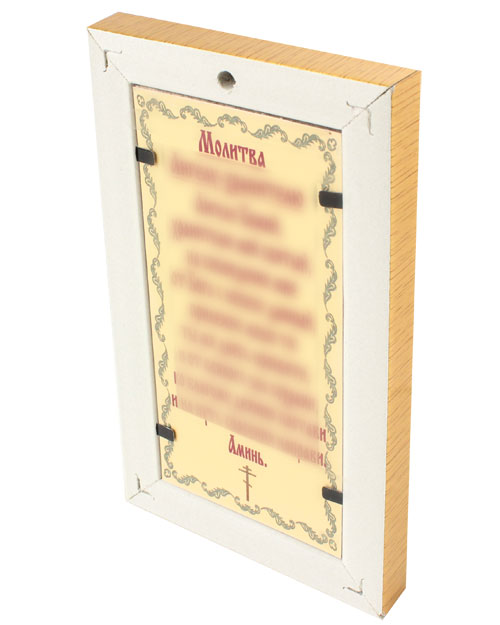 С обратной стороны иконы находится молитва Спасителю, Богородице, Ангелу Хранителю или святому, чей лик изображен.