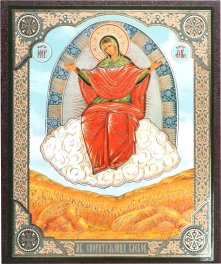 Спорительница хлебов икона Божией Матери на МДФ (10,3 х 12,3 см)