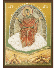 Икона на МДФ, выполненная в технике цветная полиграфия с золотым тиснением.