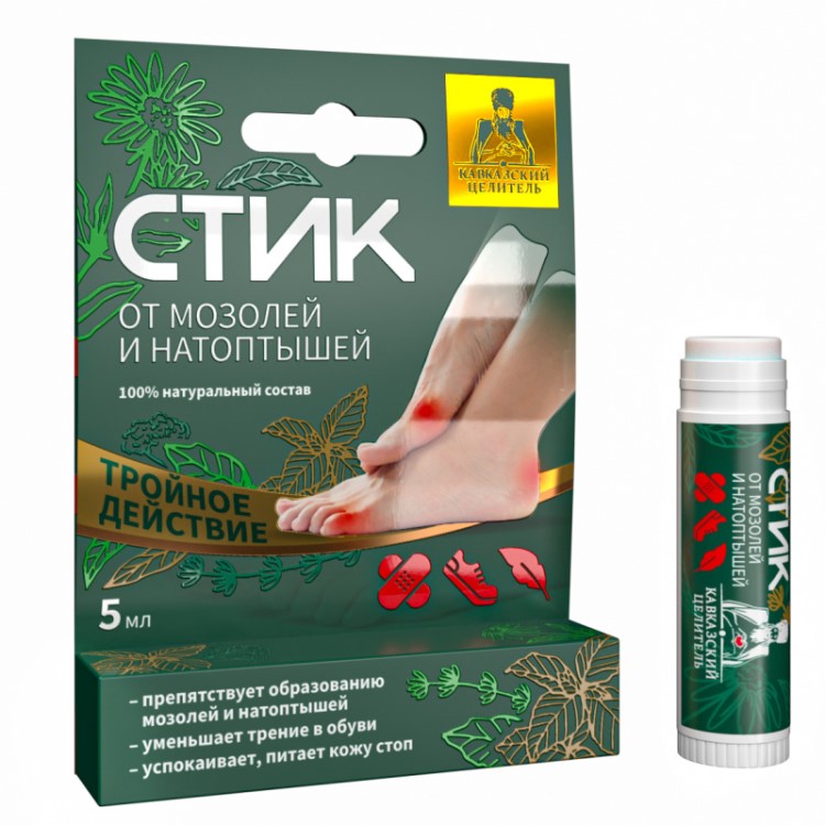 Стик от мозолей и натоптышей собрал в себе целебный натуральный состав, чтобы помочь вам избавиться от неприятных проблем с кожей стоп.