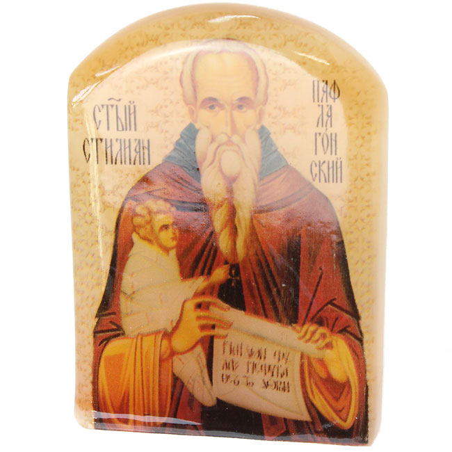 Стилиан Пафлагонский, икона настольная из селенита (45 х 30 х 65 мм, 65 г)
