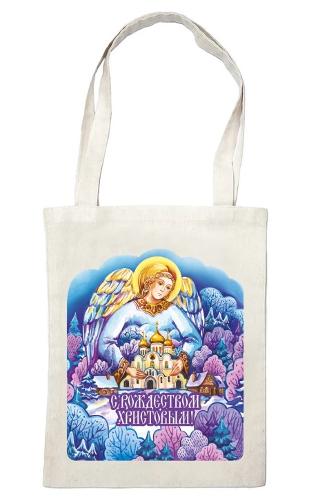 Сумка с красочной рождественской картинкой - прекрасная упаковка для подарка к Рождеству Христову и Новому году. Сумка-шоппер очень прочная и долговечная, хорошо выдерживает частые стирки. Благодаря длинным ручкам ее можно носить через плечо. Сумка-шоппер имеет натуральный цвет, яркий рисунок не стирается при носке.