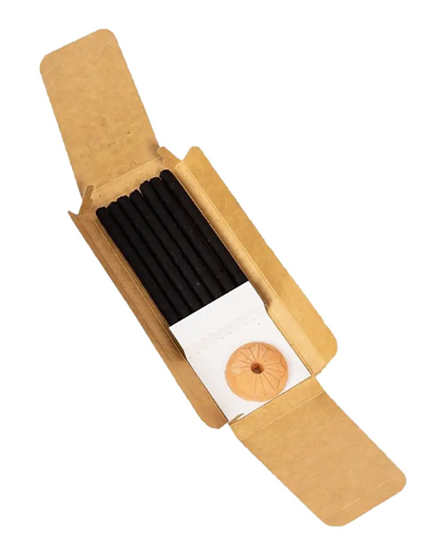 В упаковке 7 свечей длиной по 11 см. Также прилагается специально разработанная подставка для достаточно безопасного каждения в любом помещении.