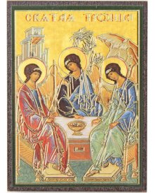 Икона на МДФ, выполненная в технике цветная полиграфия с золотым тиснением.