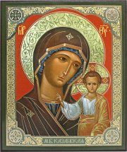 Икона на МДФ, выполненная в технике цветная полиграфия с золотым тиснением.