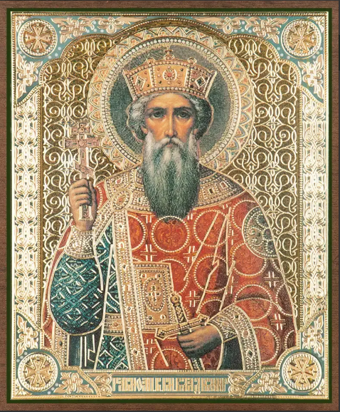 Икона на МДФ, выполненная в технике цветная полиграфия с золотым тиснением.