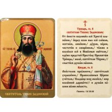 Икона на плотном глянцевом картоне с тропарем и кондаком святителю Тихону Задонскому на обратной стороне.