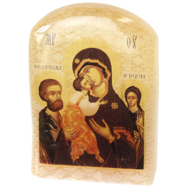 Трех Радостей, икона настольная из селенита (45 х 30 х 65 мм, 65 г)