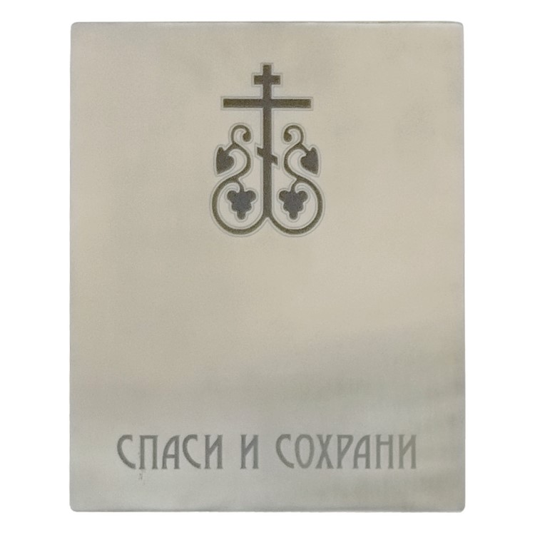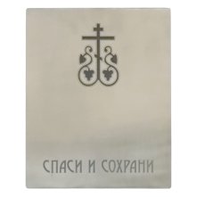 Икона на титановой бронепластине «Angelos» с надписью «Спаси и сохрани» на обороте пластины. Иконопись выполнена красками на листовом пластике высокой плотности с ручным золочением и лаковым водоотталкивающим покрытием. Все иконы упаковываются в индивидуальные чехлы из водонепроницаемого материала с флисовой подкладкой для защиты поверхности икон.